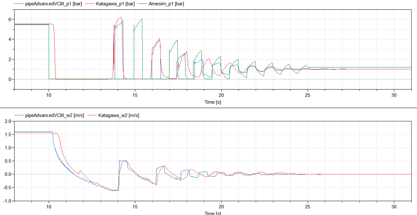 Similarly, this model includes Dynamic Momentum Balance with suppression of numerical osciallations. Finite volume discretization tend to give numerical oscillations at low friction pressure losses (mass flows). The frequency of these oscillations scales with discretization.